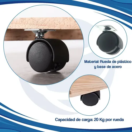 4 Ruedas Para Muebles Giratorias (2 Con Freno) 40mm Nylon Negro