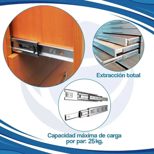 Corredera Telescópica 450 Mm 45 Cm Cajón Casa Ne Mundo Cima Negro