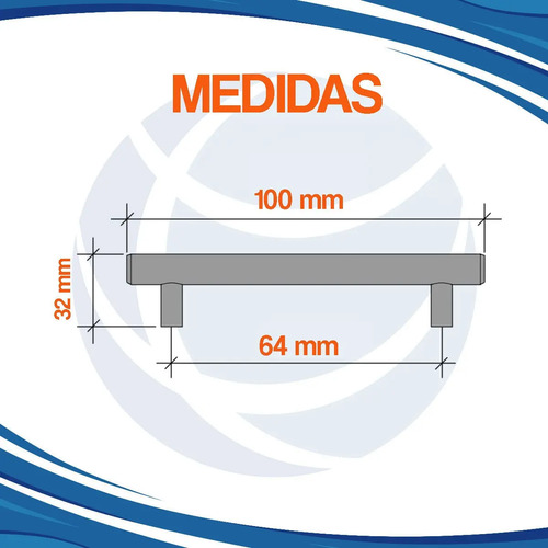 Manija Tirador Barral De Acero Inoxidable Mueble 64 Mm Mundo Cima Cromado Cima