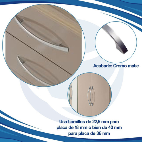 Tirador Puerta Cullen Cromo Mate Mueble Cocina X4/u Del Sur Cromo Mate Liso